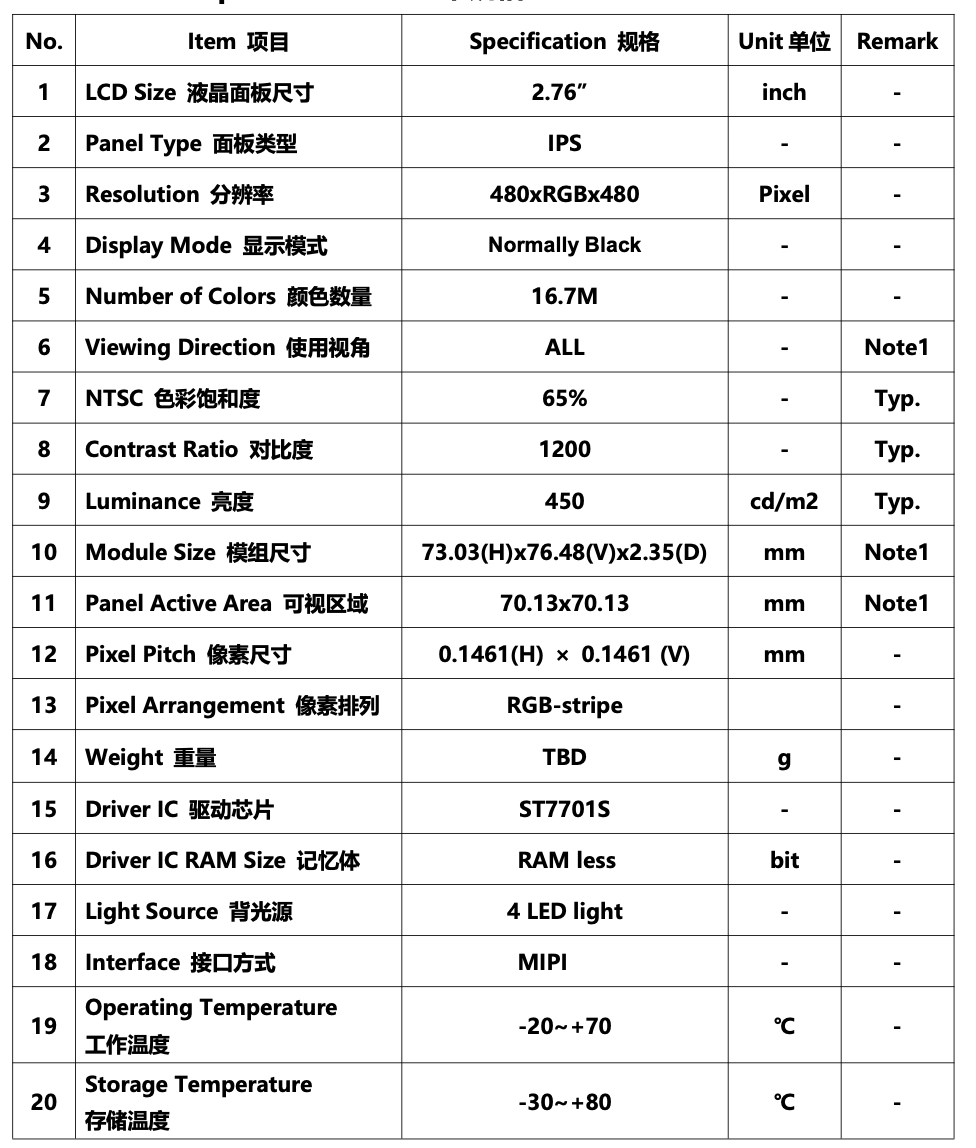 DisplayResolution:480*RGB*480 pixels